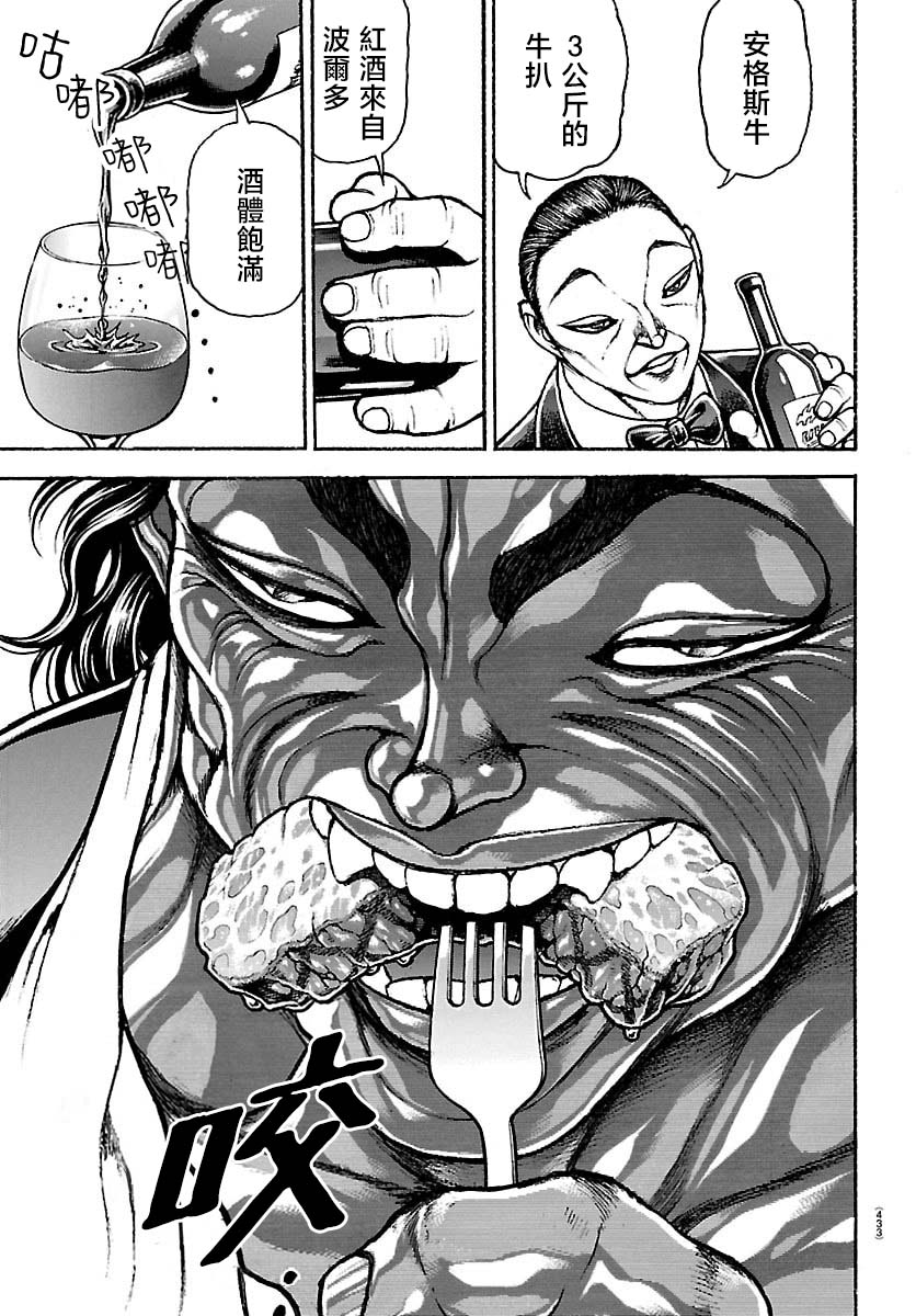格斗漫画《刃牙》系列第六部。所谓强大到底为何……战斗、亲子打架、在不断格斗中与「道」之上前进的强大而尽头的强大就在这一带了!!