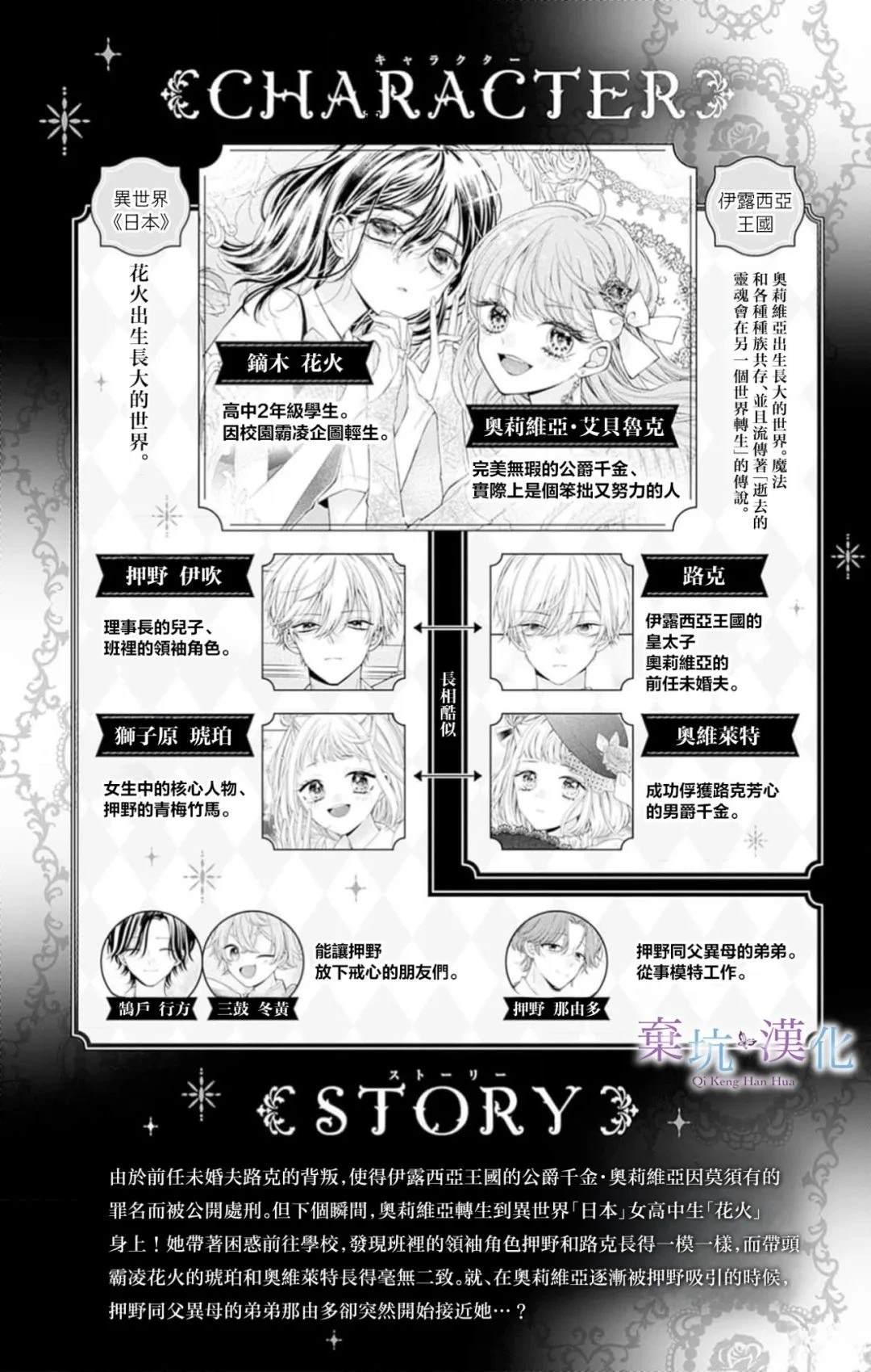 被身为未婚夫的路克皇太子背叛,而遭到公行刑的公爵千金?奥莉维亚。其徬徨的灵魂,作为异世界的日本女高中生?花火再次苏醒。 除了花火会在学校被人霸凌这件事,如班上老大般的男子竟与路克极为相似.....? 遇见全新自己的异世界转生×下克上的故事!